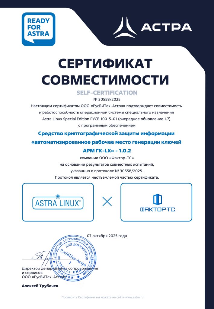 АРМ ГК-LX сертификат совместимости с ASTRA LINUX